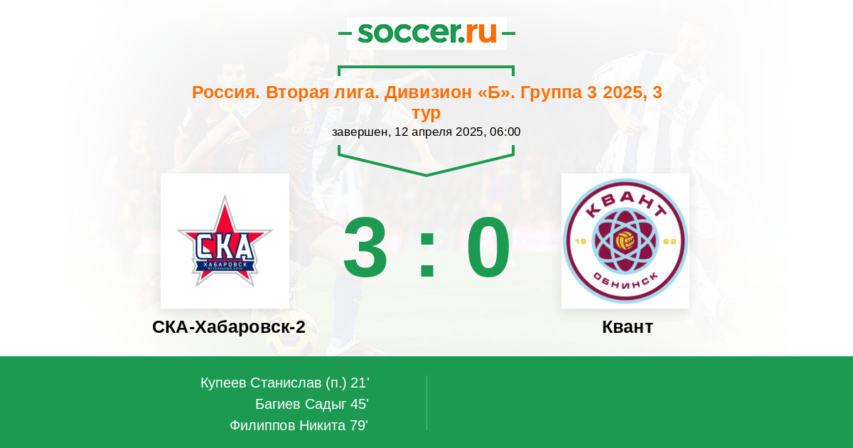 СКА-Хабаровск-2 - Квант: обзор матча 12 апреля 2025