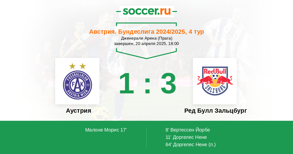Аустрия - Ред Булл Зальцбург: обзор матча 20 апреля 2025