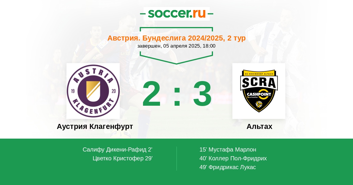Аустрия Клагенфурт - Альтах: обзор матча 5 апреля 2025