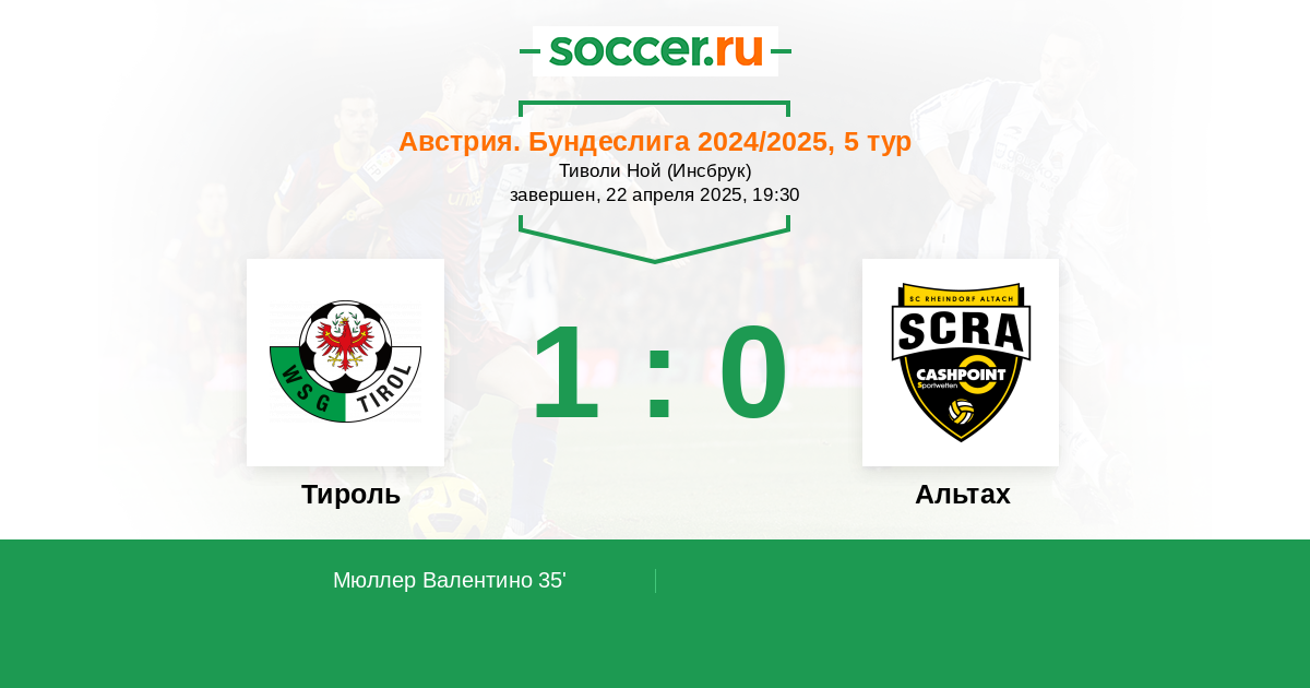 Тироль - Альтах: обзор матча 22 апреля 2025