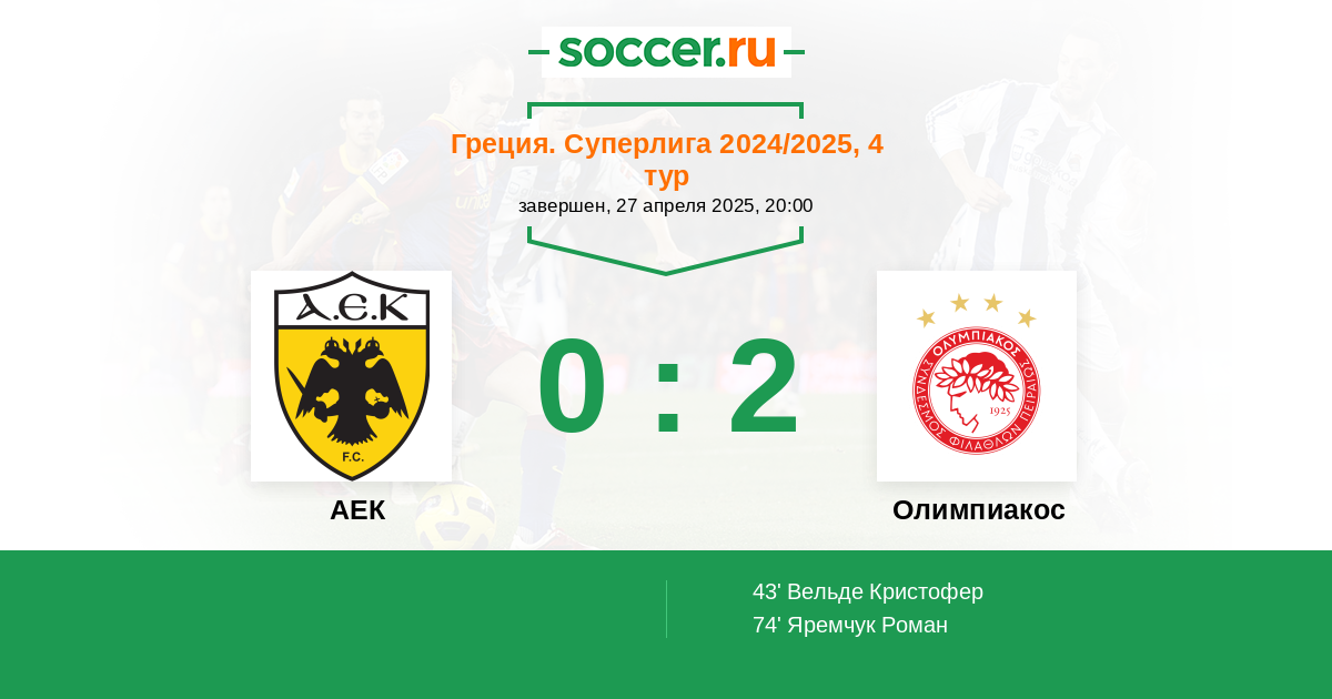 АЕК - Олимпиакос: обзор матча 27 апреля 2025