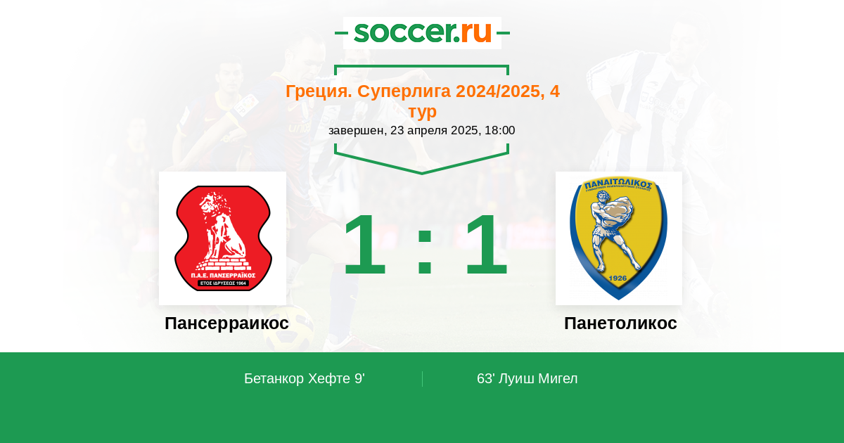 Пансерраикос - Панетоликос: обзор матча 23 апреля 2025