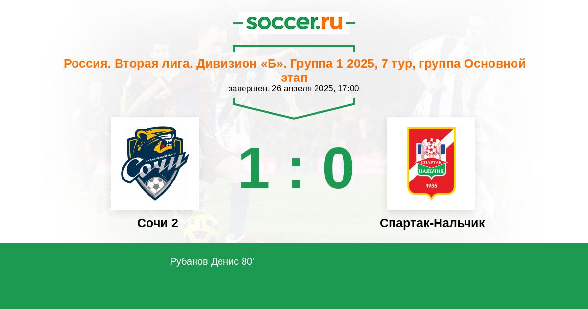 Сочи 2 - Спартак-Нальчик: обзор матча 26 апреля 2025