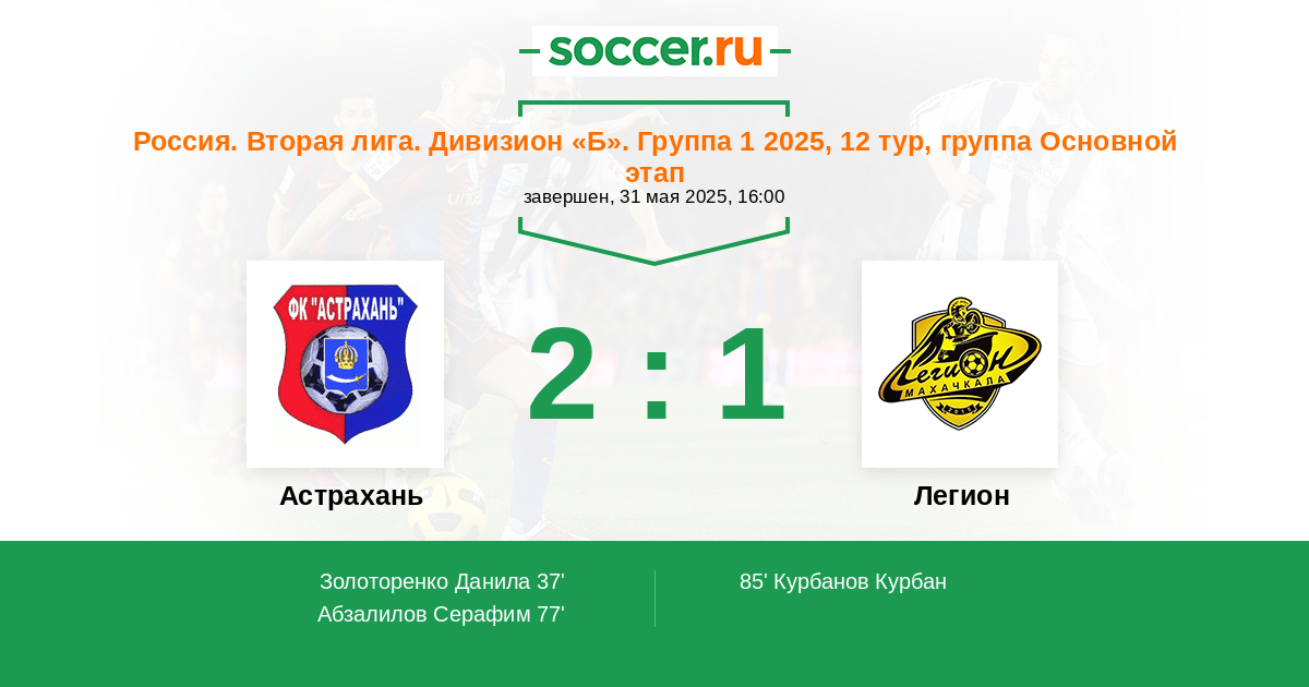 Астрахань - Легион: обзор матча 31 мая 2025