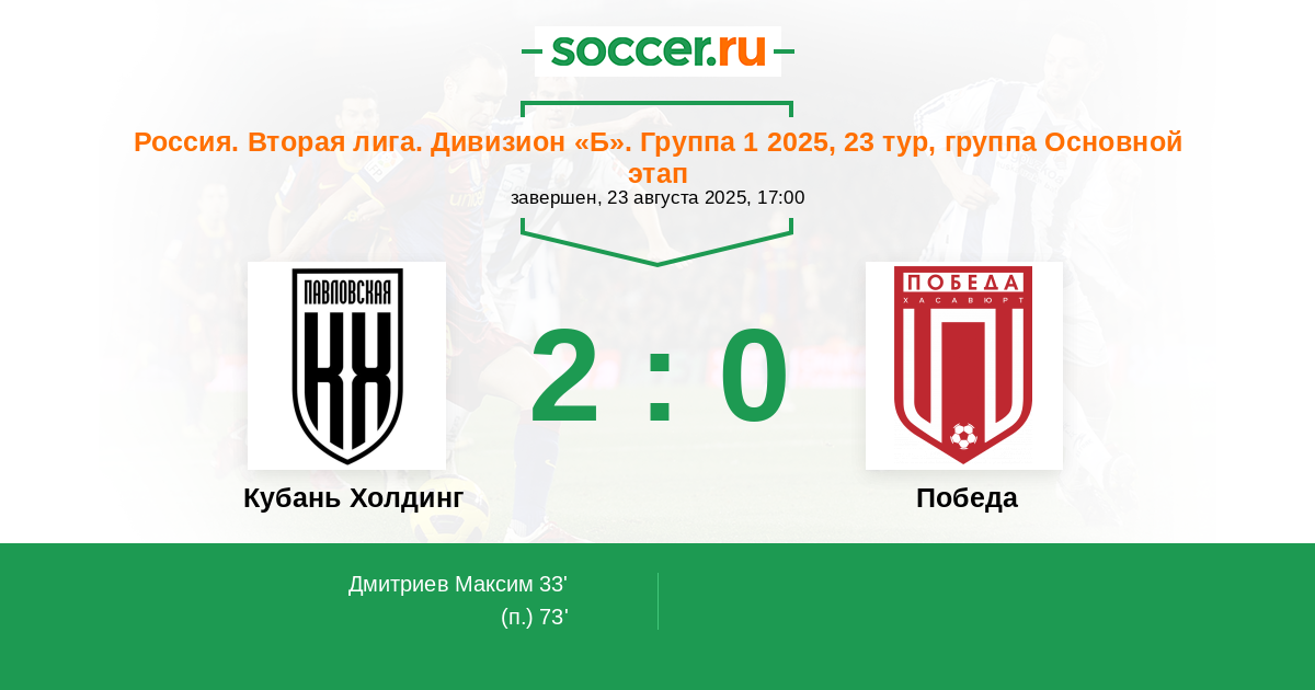 Кубань Холдинг - Победа: обзор матча 23 августа 2025