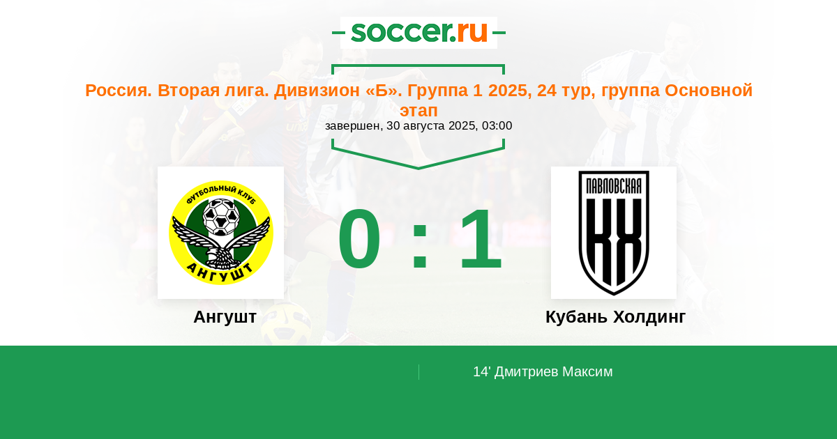 Ангушт - Кубань Холдинг: обзор матча 30 августа 2025