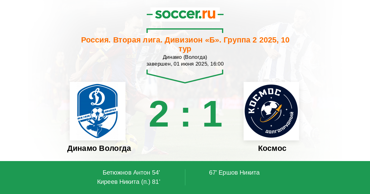 Динамо Вологда - Космос: обзор матча 1 июня 2025