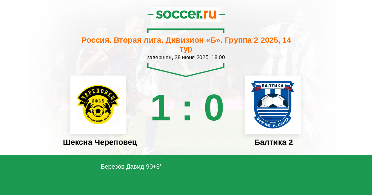 Шексна Череповец - Балтика 2: обзор матча 28 июня 2025