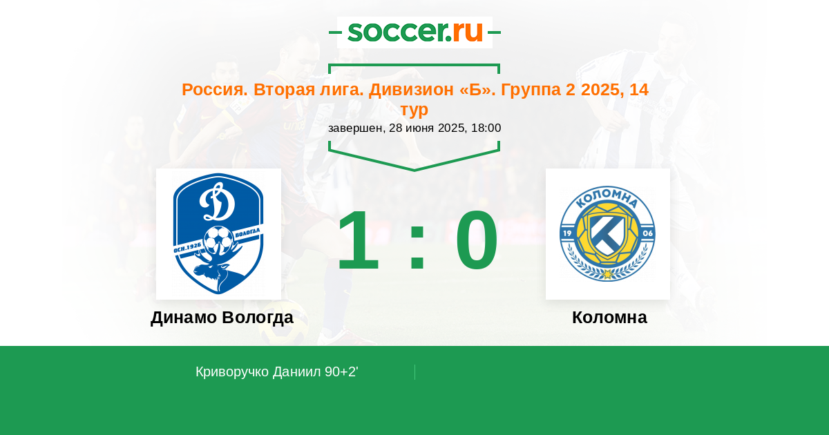 Динамо Вологда - Коломна: обзор матча 28 июня 2025