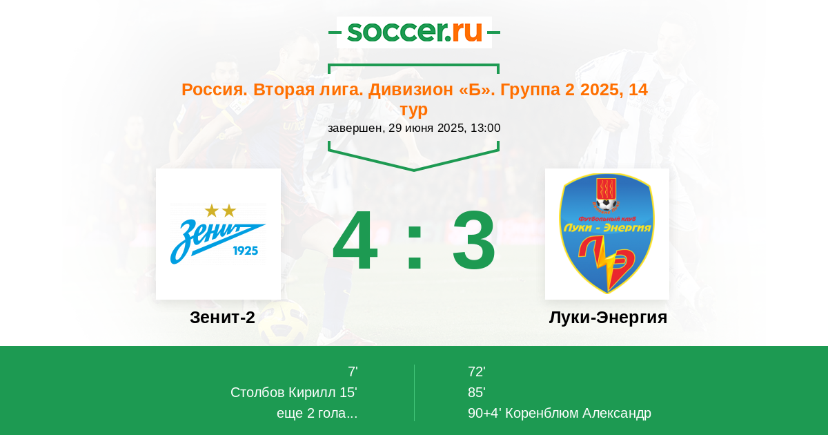 Зенит-2 - Луки-Энергия: обзор матча 29 июня 2025