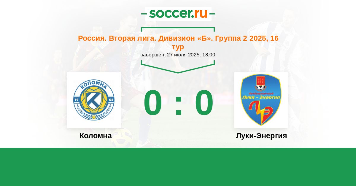 Коломна - Луки-Энергия: обзор матча 27 июля 2025