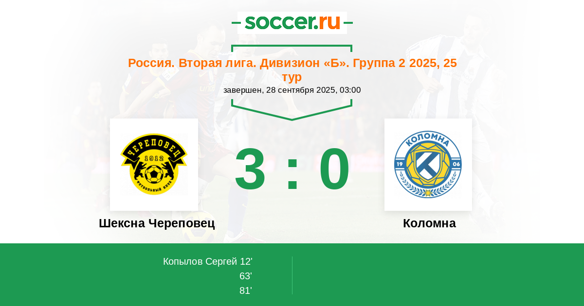 Шексна Череповец - Коломна: обзор матча 28 сентября 2025