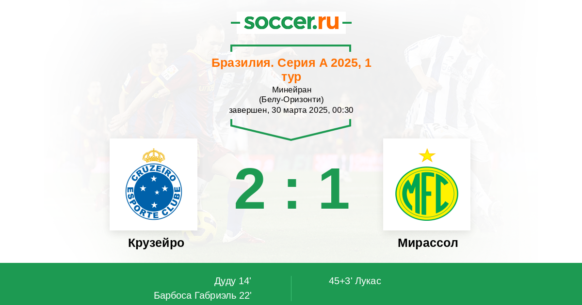 Крузейро - Мирассол: обзор матча 30 марта 2025