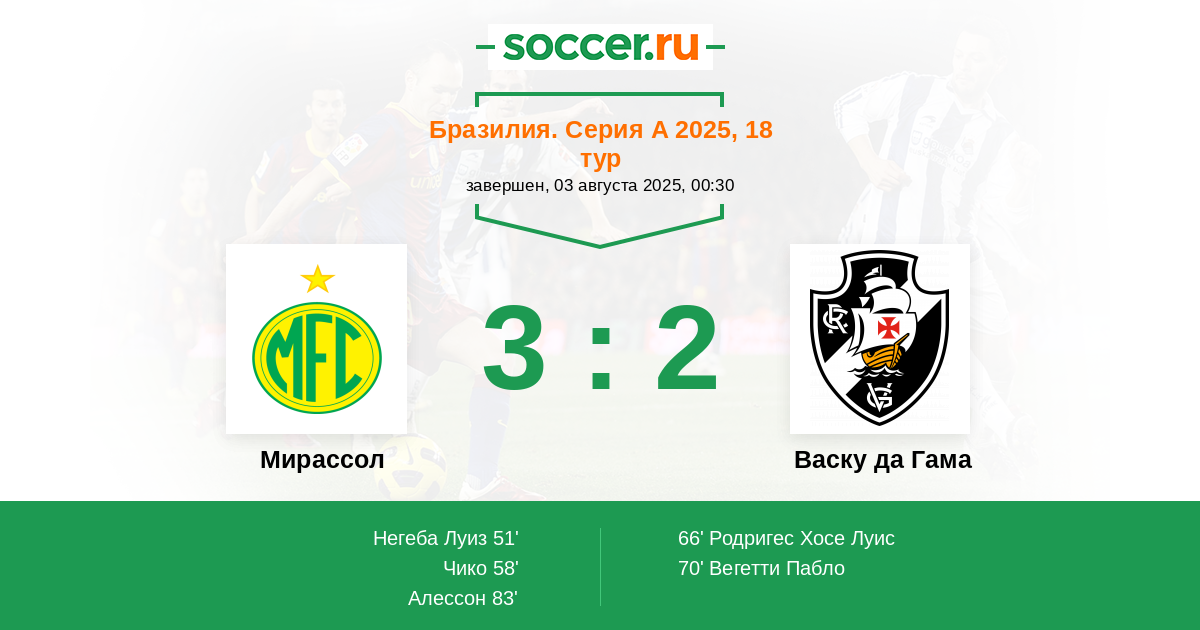 Мирассол - Васку да Гама: обзор матча 3 августа 2025