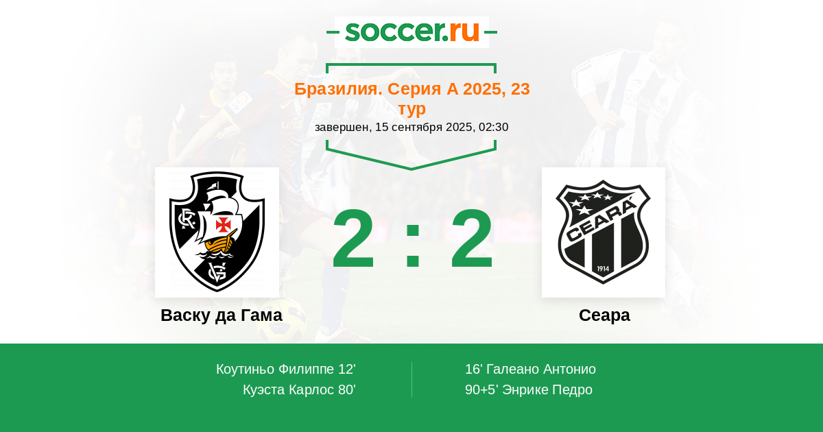 Васку да Гама - Сеара: обзор матча 15 сентября 2025