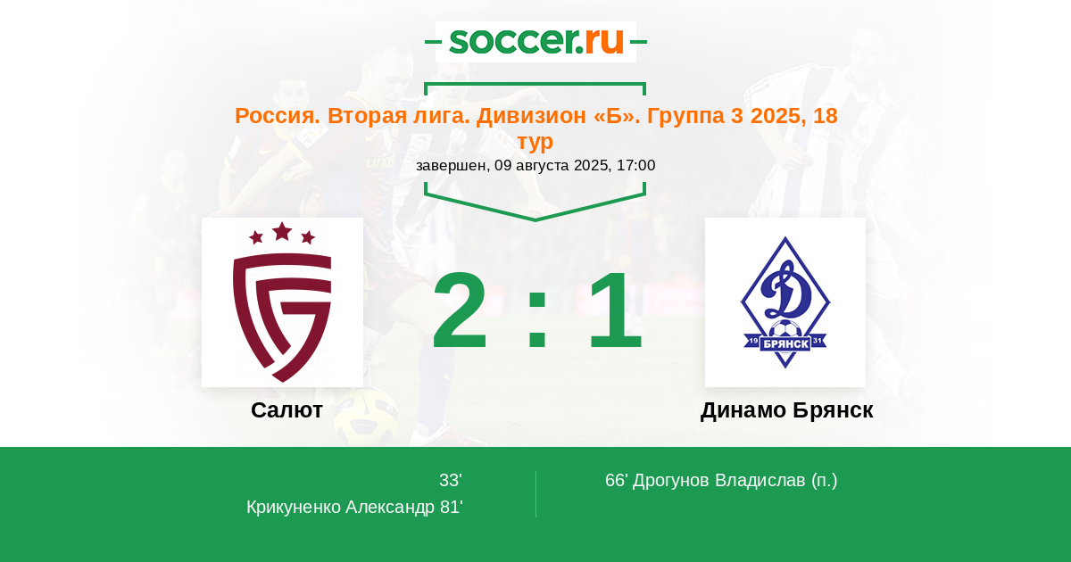 Салют - Динамо Брянск: обзор матча 9 августа 2025