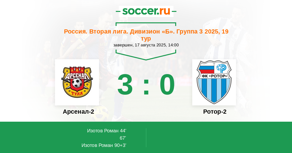 Арсенал-2 - Ротор-2: обзор матча 17 августа 2025
