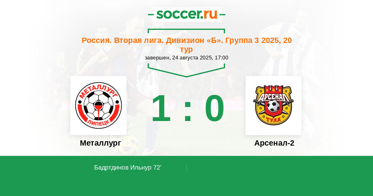 Металлург - Арсенал-2: обзор матча 24 августа 2025