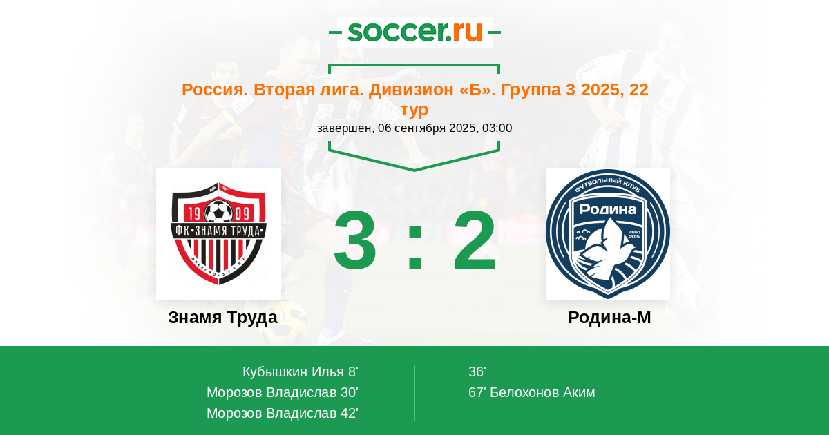 Знамя Труда - Родина-М: обзор матча 6 сентября 2025