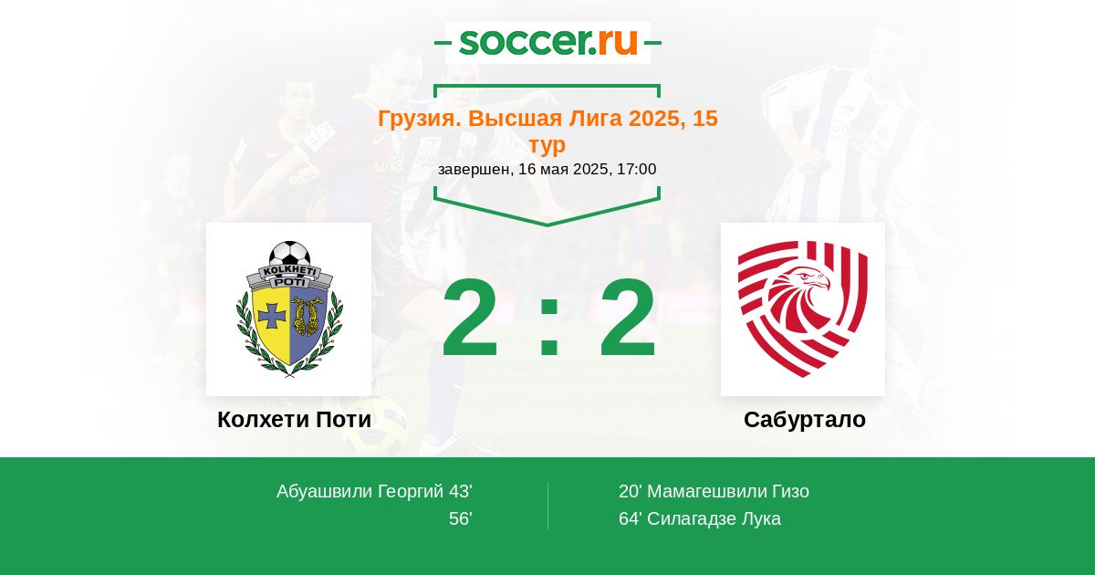Колхети Поти - Сабуртало: обзор матча 16 мая 2025