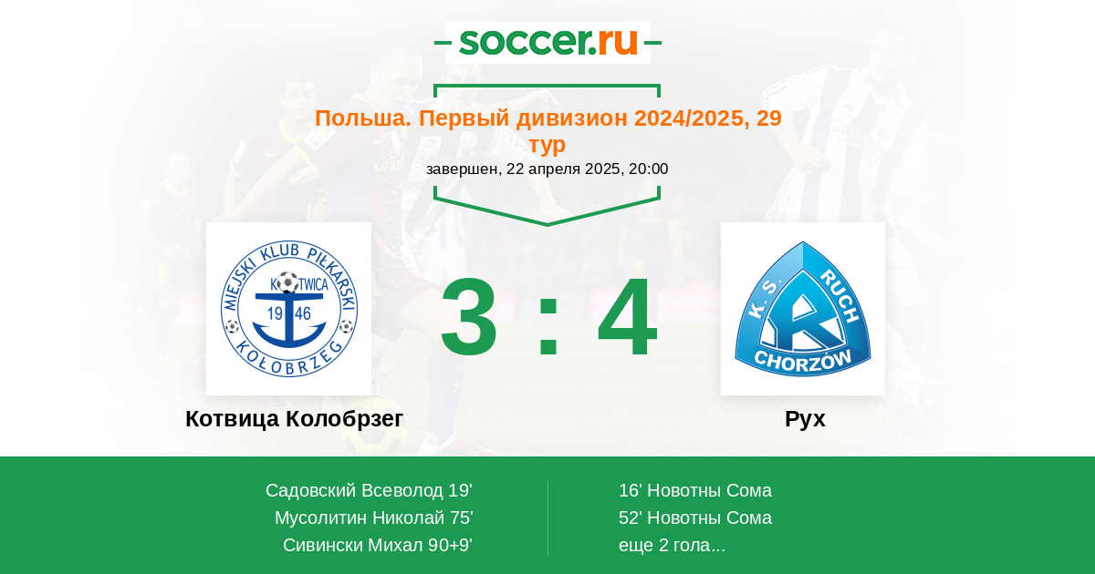 Котвица Колобрзег - Рух: обзор матча 22 апреля 2025