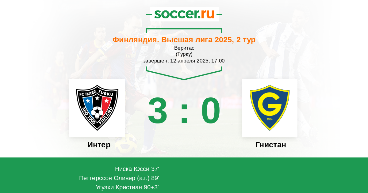Интер - Гнистан: обзор матча 12 апреля 2025