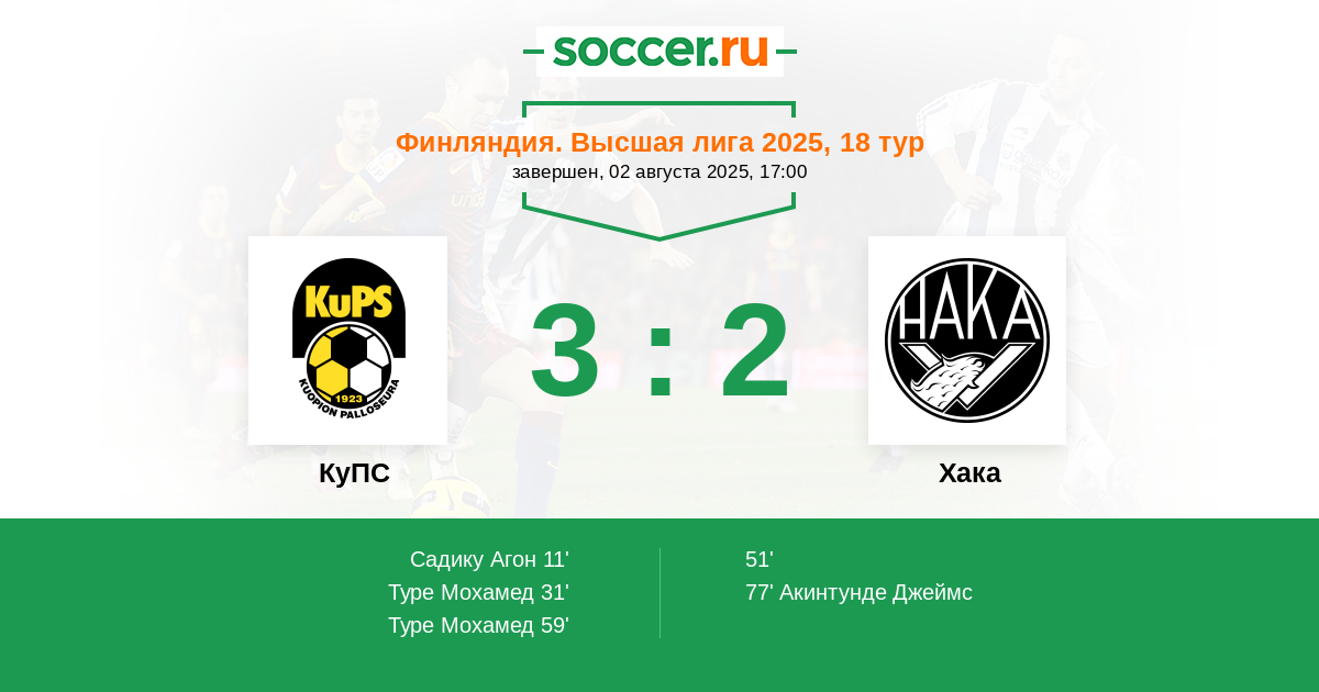 КуПС - Хака: обзор матча 2 августа 2025