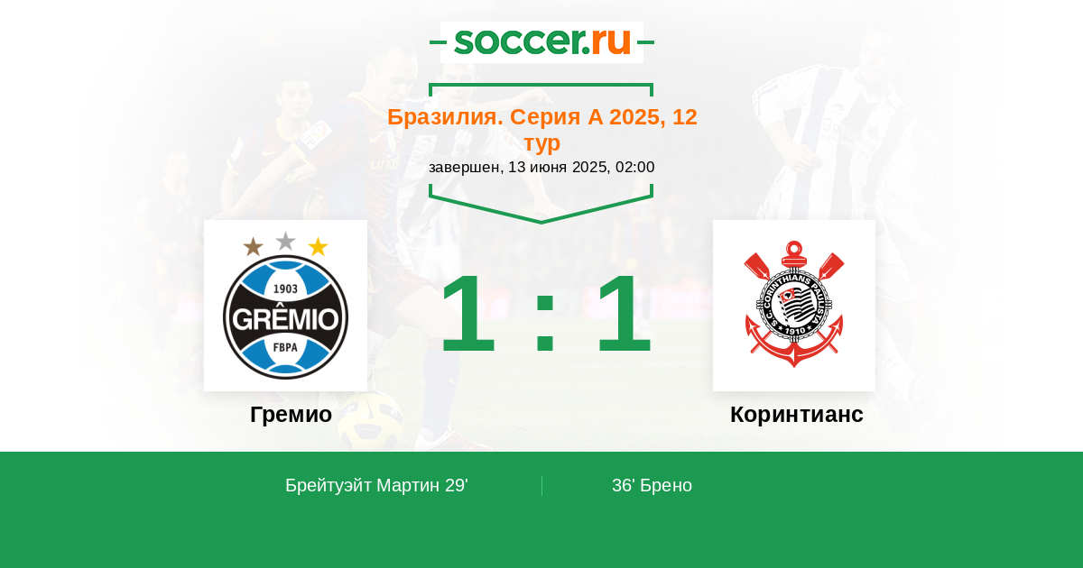 Гремио - Коринтианс: обзор матча 13 июня 2025