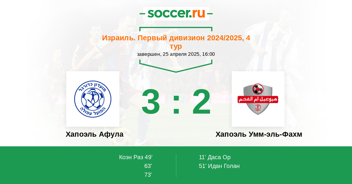Хапоэль Афула - Хапоэль Умм-эль-Фахм: обзор матча 25 апреля 2025