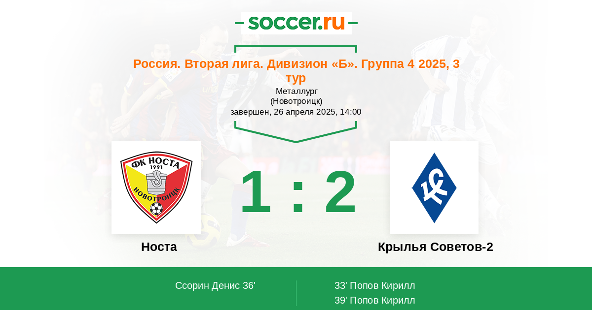 Носта - Крылья Советов-2: обзор матча 26 апреля 2025