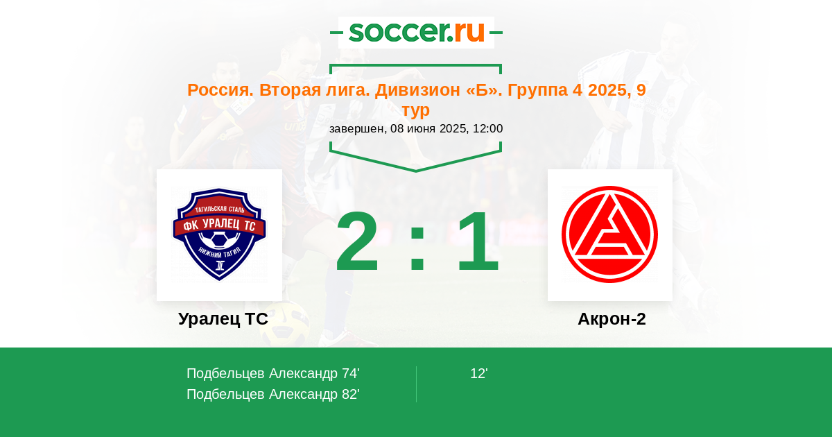Уралец ТС - Акрон-2: обзор матча 8 июня 2025