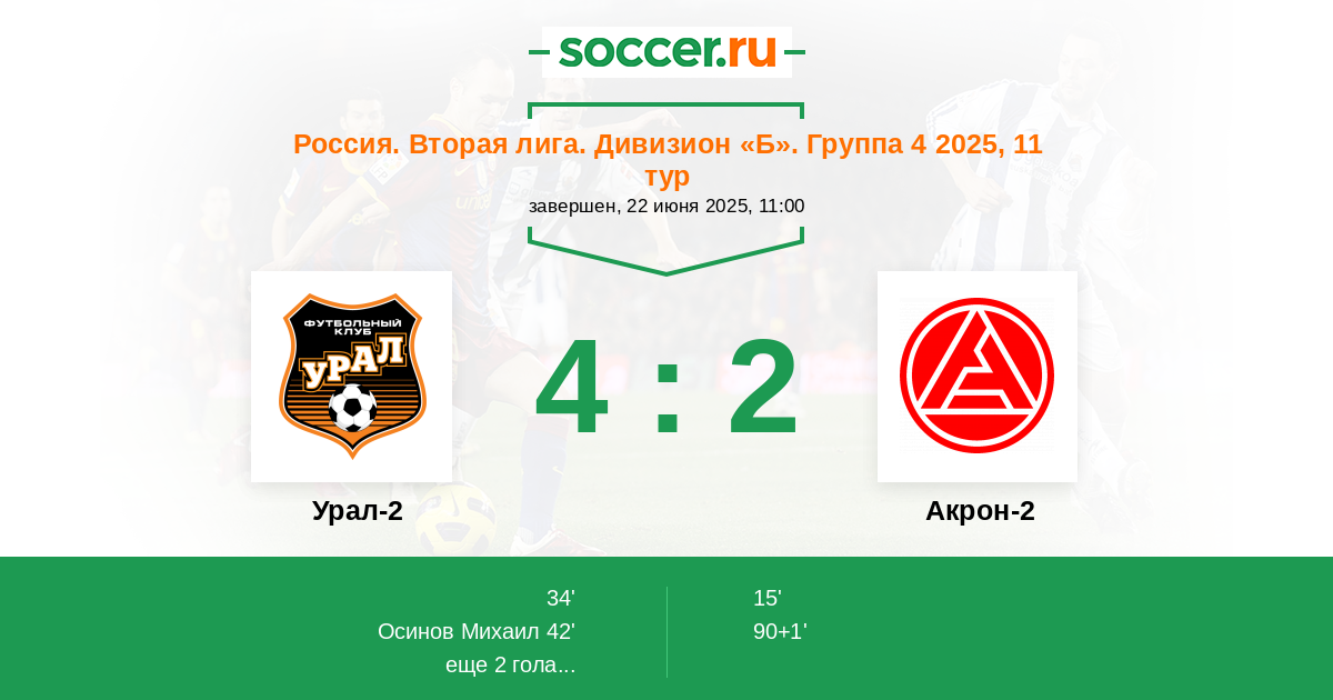 Урал-2 - Акрон-2: обзор матча 22 июня 2025