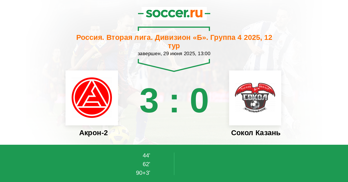 Акрон-2 - Сокол Казань: обзор матча 29 июня 2025