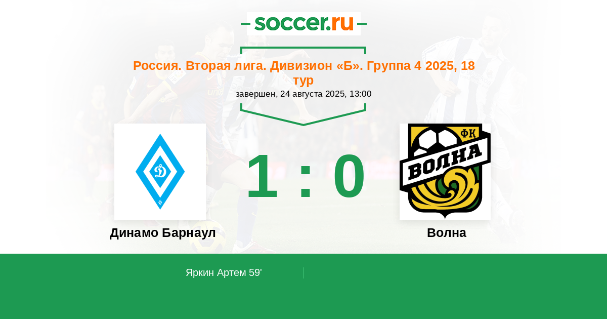 Динамо Барнаул - Волна: обзор матча 24 августа 2025