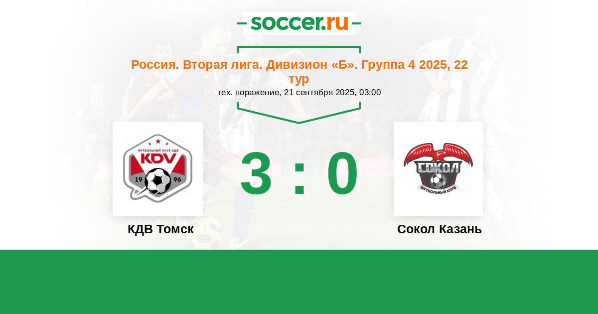 КДВ Томск - Сокол Казань: обзор матча 21 сентября 2025
