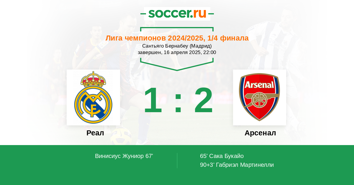 Реал - Арсенал: обзор матча 16 апреля 2025