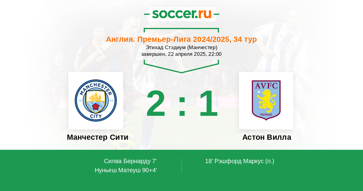 Манчестер Сити - Астон Вилла: обзор матча 22 апреля 2025