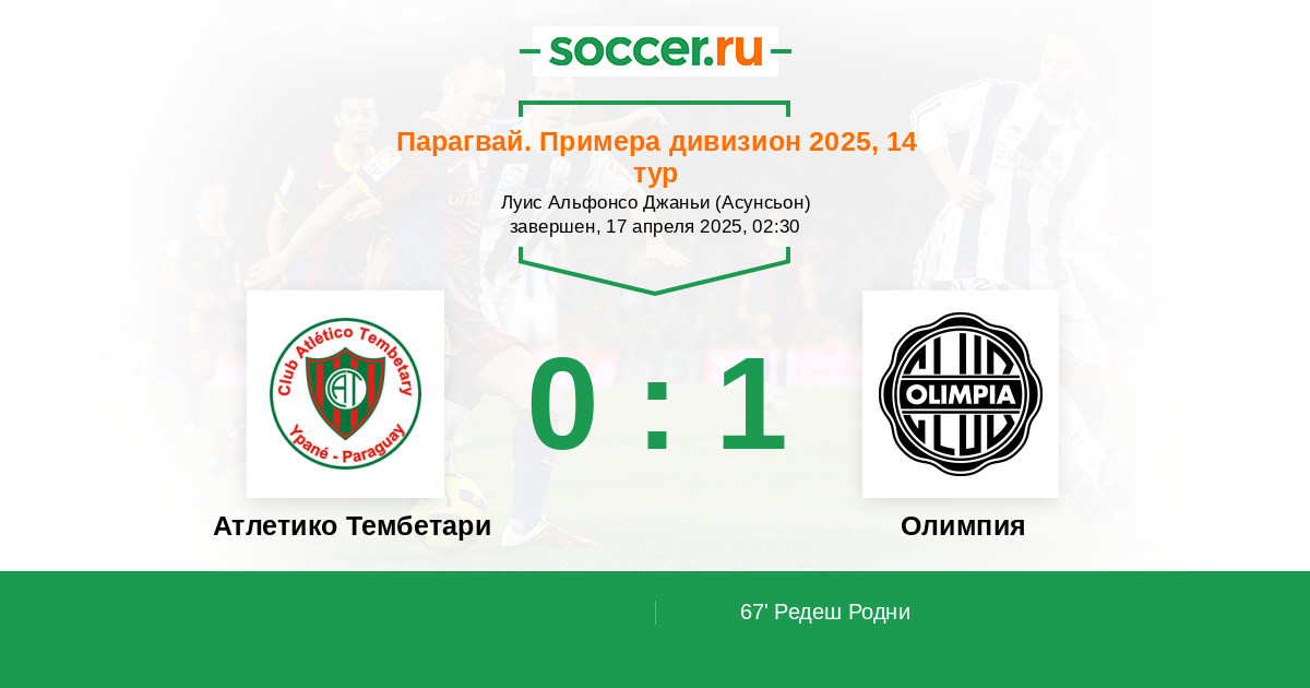 Атлетико Тембетари - Олимпия: обзор матча 17 апреля 2025