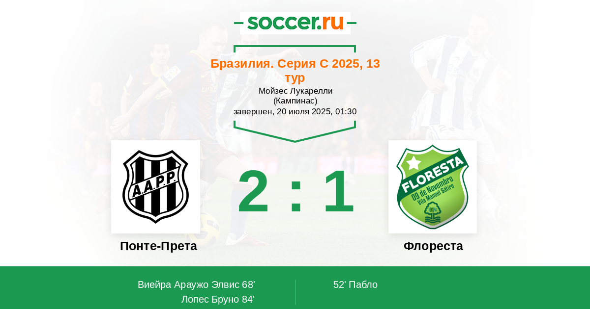 Понте-Прета - Флореста: обзор матча 20 июля 2025