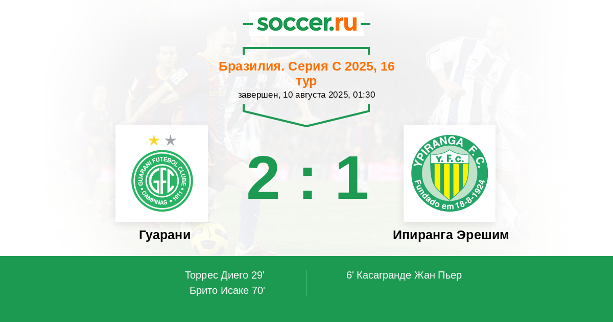 Гуарани - Ипиранга Эрешим: обзор матча 10 августа 2025