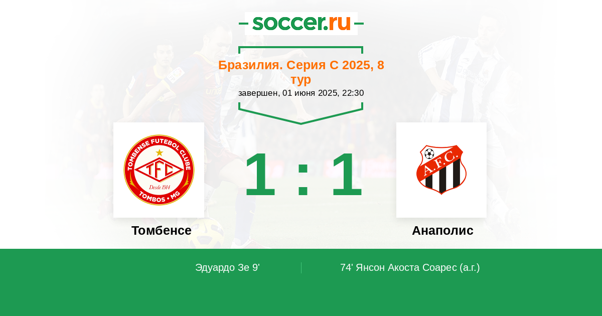 Томбенсе - Анаполис: обзор матча 1 июня 2025