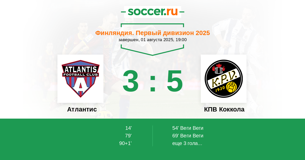Атлантис - КПВ Коккола: обзор матча 1 августа 2025