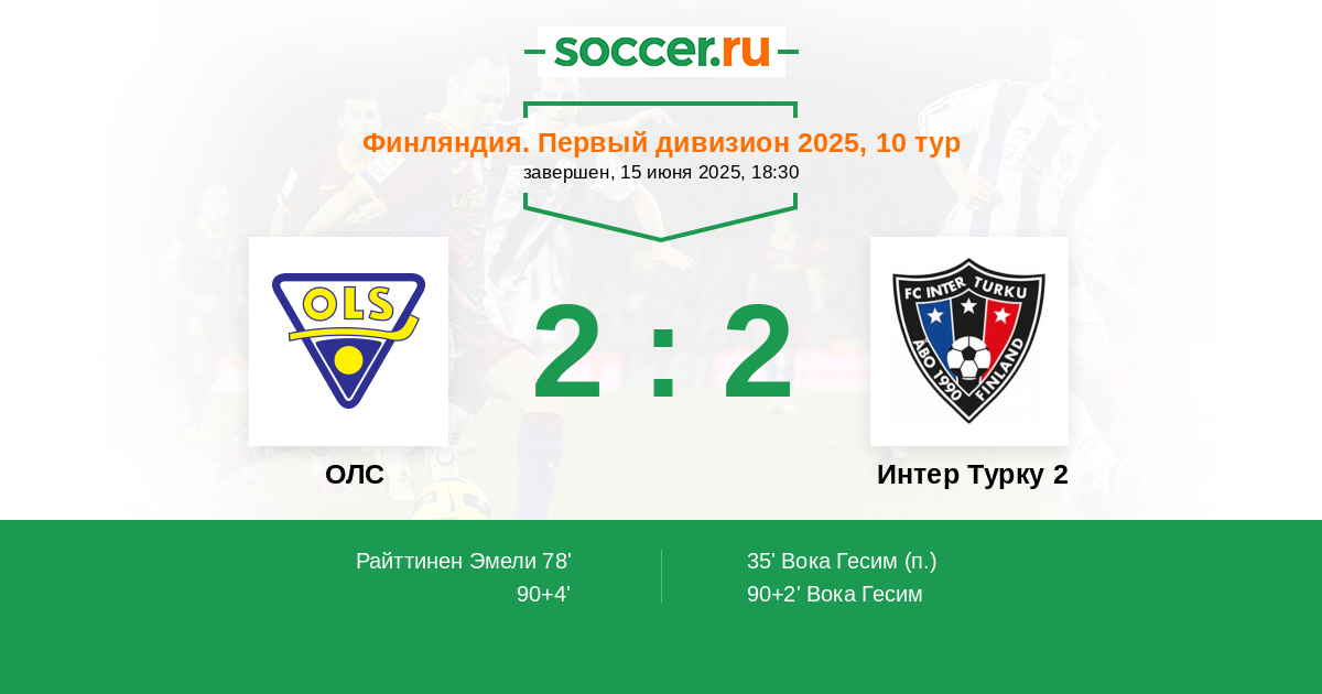 ОЛС - Интер Турку 2: обзор матча 15 июня 2025