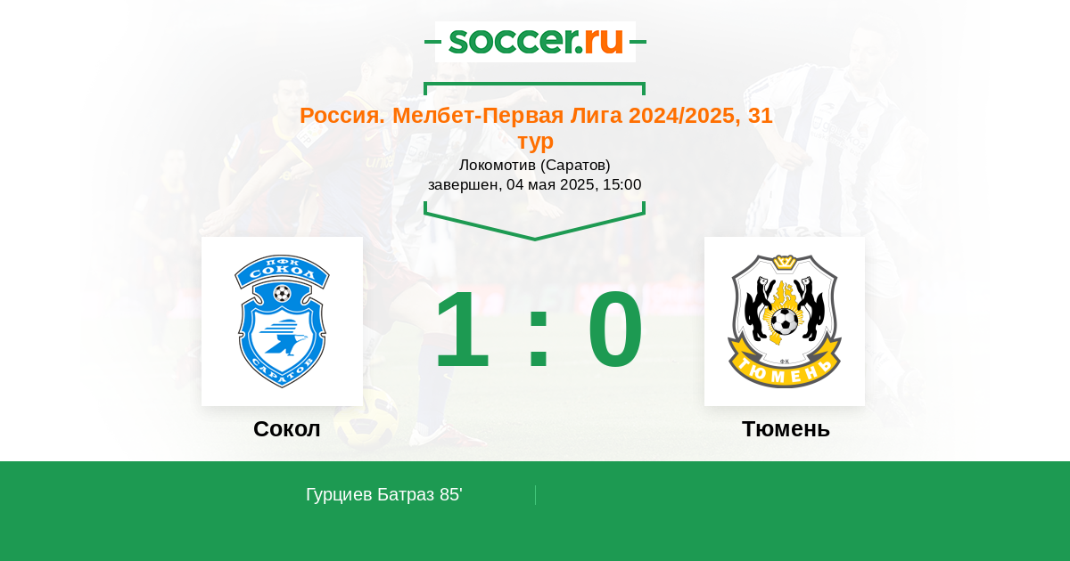 Сокол - Тюмень: обзор матча 4 мая 2025