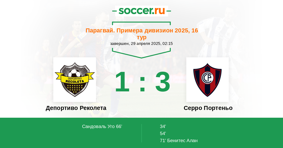 Депортиво Реколета - Серро Портеньо: обзор матча 29 апреля 2025