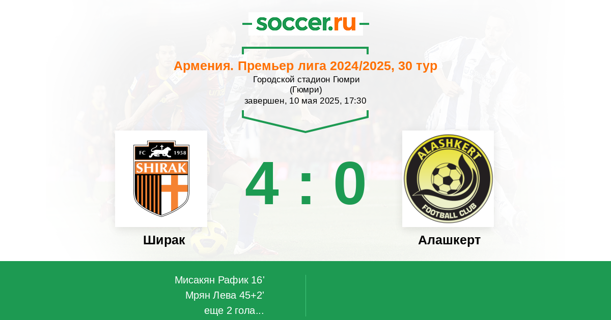 Ширак - Алашкерт: обзор матча 10 мая 2025