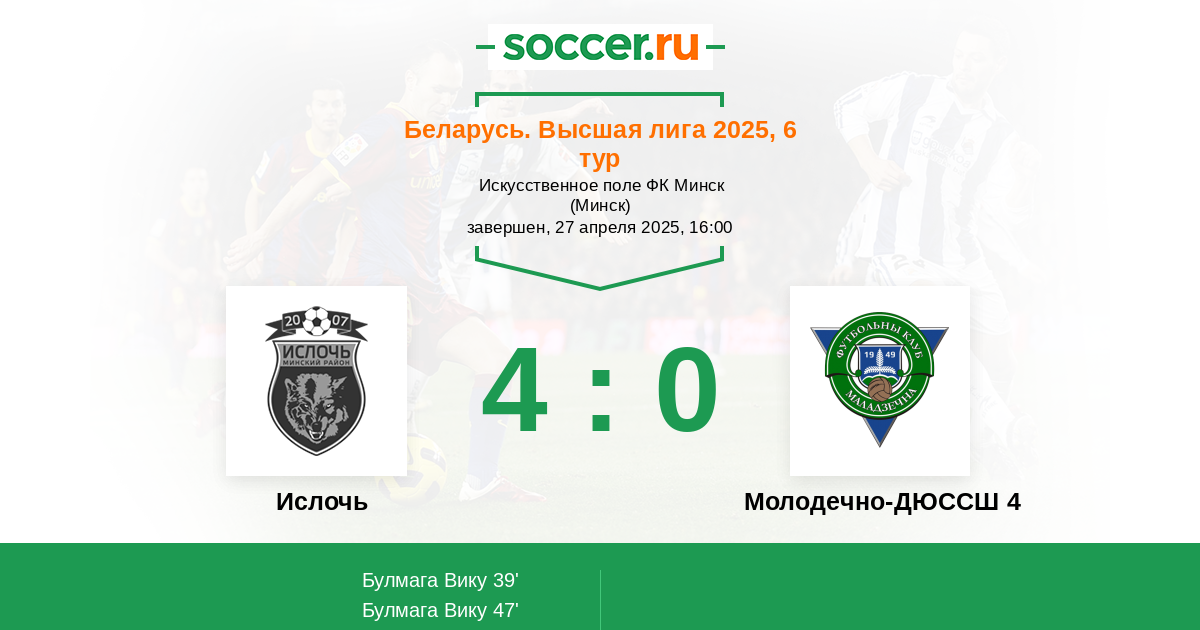Ислочь - Молодечно-ДЮССШ 4: обзор матча 27 апреля 2025