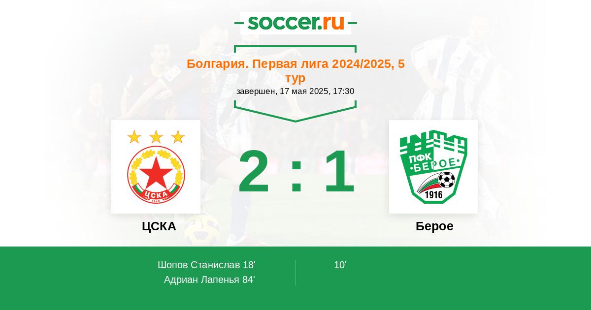 ЦСКА - Берое: обзор матча 17 мая 2025