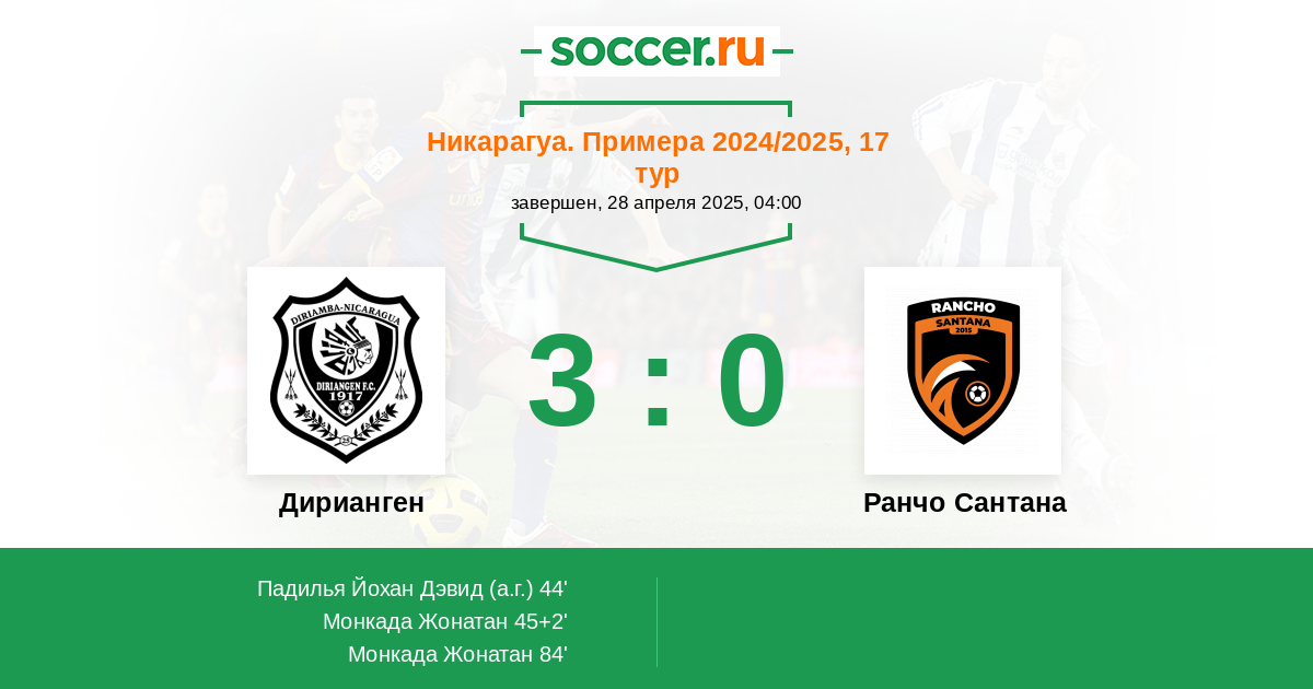 Дирианген - Ранчо Сантана: обзор матча 28 апреля 2025