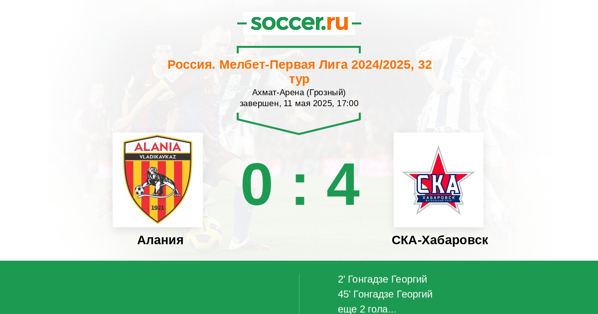Алания - СКА-Хабаровск: обзор матча 11 мая 2025
